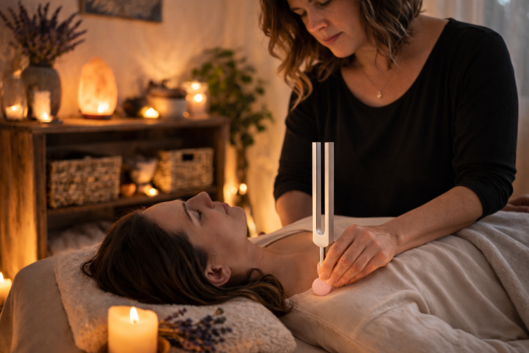 Jede Stimmgabel erzeugt eine klare, reine Frequenz. Diese Schwingung überträgt sich über den Kontakt auf den Körper – auf Muskeln, Faszien, Gewebe und auch auf das Nervensystem.